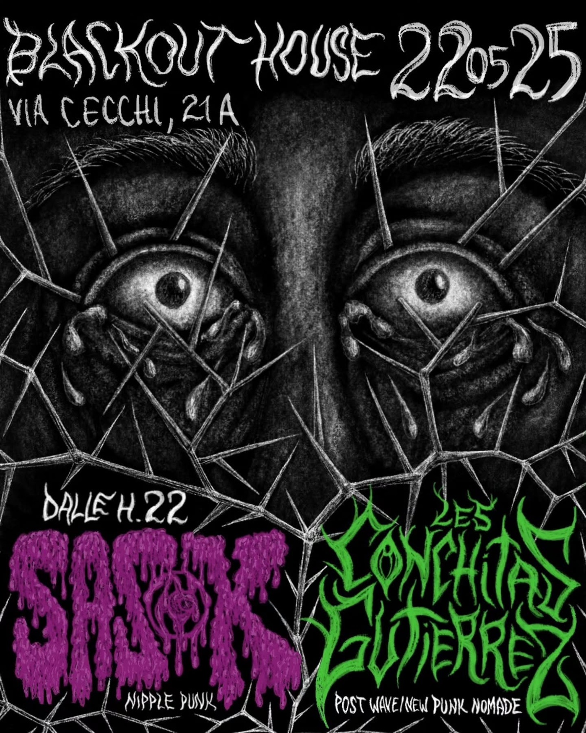 Freschissim3 per pogare insieme ai SASOK band nipplepunk pornwave del torinese e LES CONCHITAS GUTIERREZ post wave new punk nomade direttamente da Barcelona.