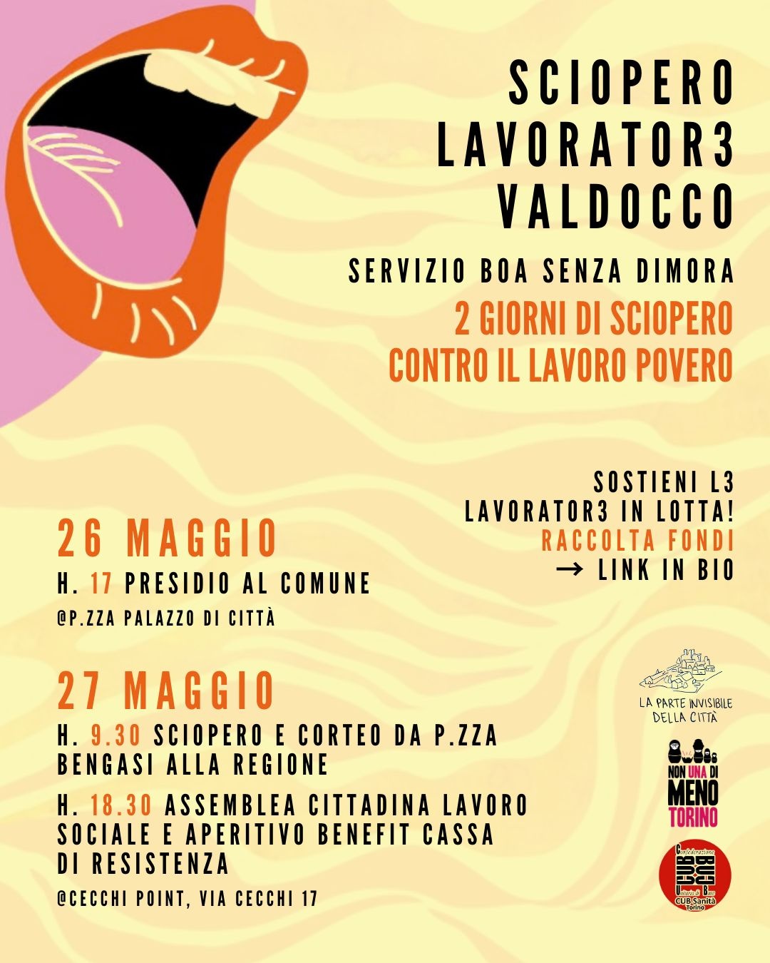 [2025-05-26] DUE GIORNI DI SCIOPERO CONTRO IL LAVORO POVERO - LAVORATOR3 BOA SENZA DIMORA @ Torino