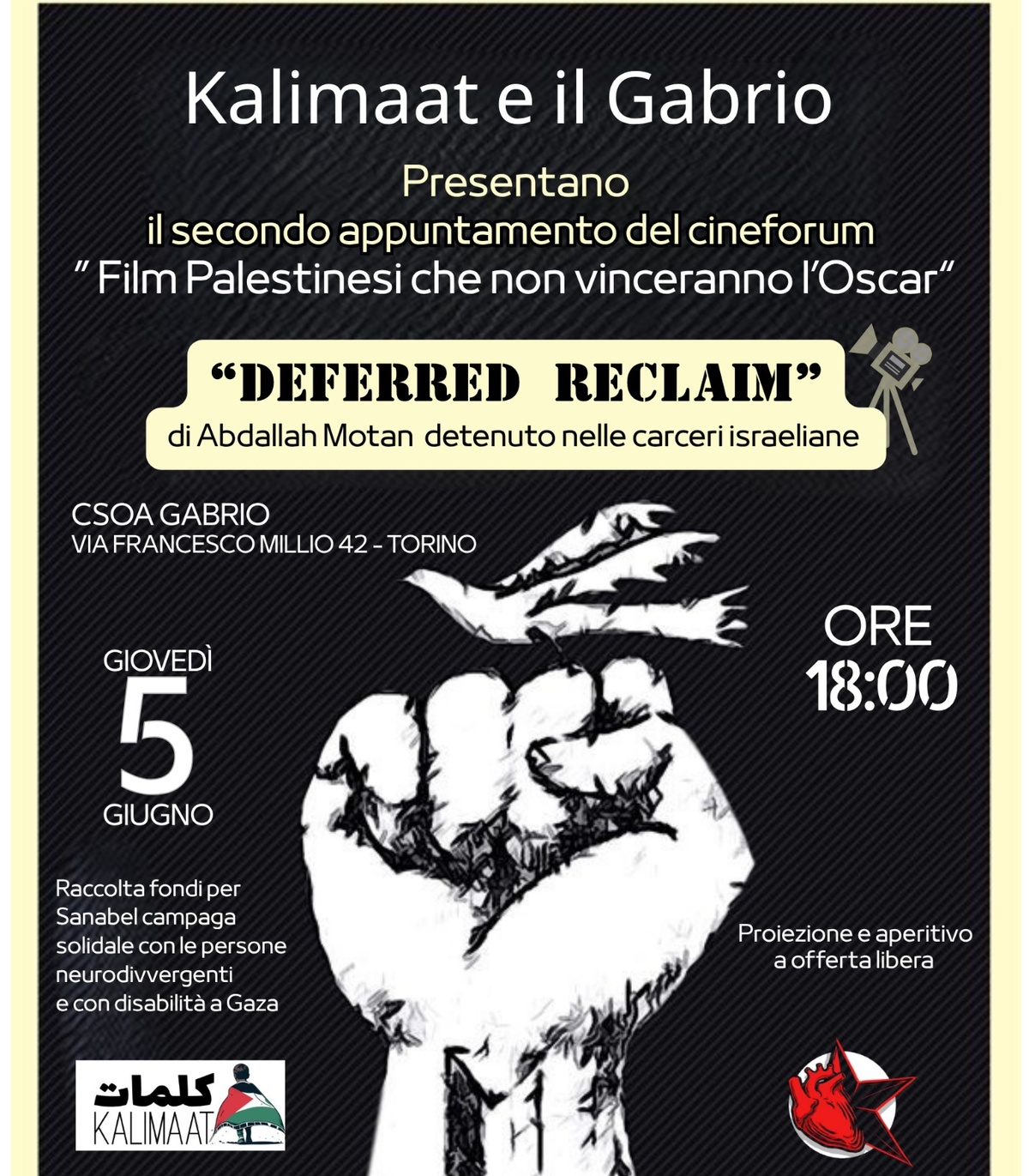 [2025-06-05] Deffered Reclaim - La Detenzione Politica e la Resistenza Palestinese @ Csoa Gabrio