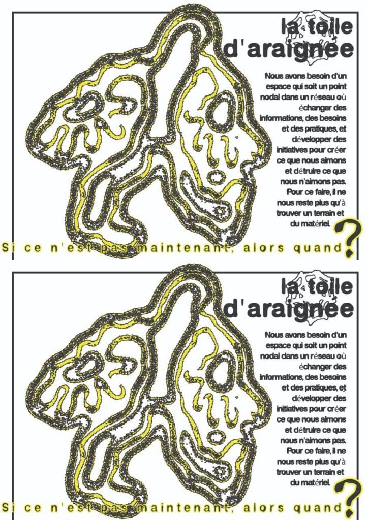 Lines of life and struggle, and social densities to be mapped, traversed and skilfully handled. Proceeding in a zigzag pattern, weaving plots, warps and complicities, is a game with the multiple curves of space and time, both individual and social. It is a question of will and tools that can help us hook onto opportunities that arise in navigation, as well as knowing how to detach ourselves from ordinariness, authoritarianism and the social force of gravity that keeps us pinned to the ground of the ever-same and digitised solitude. In order to weave plots, moments and means of navigation, we need spaces and materials on the routes where we can experiment with other forms of life and struggle. We are trying to give shape and substance to our dream: a place on the road where we can meet and breathe together. We are a small tribe of nomads and semi-nomads from the western lands of Europe. Here, in the Agen area, we are looking for a piece of land where we can try to bring this dream to life.