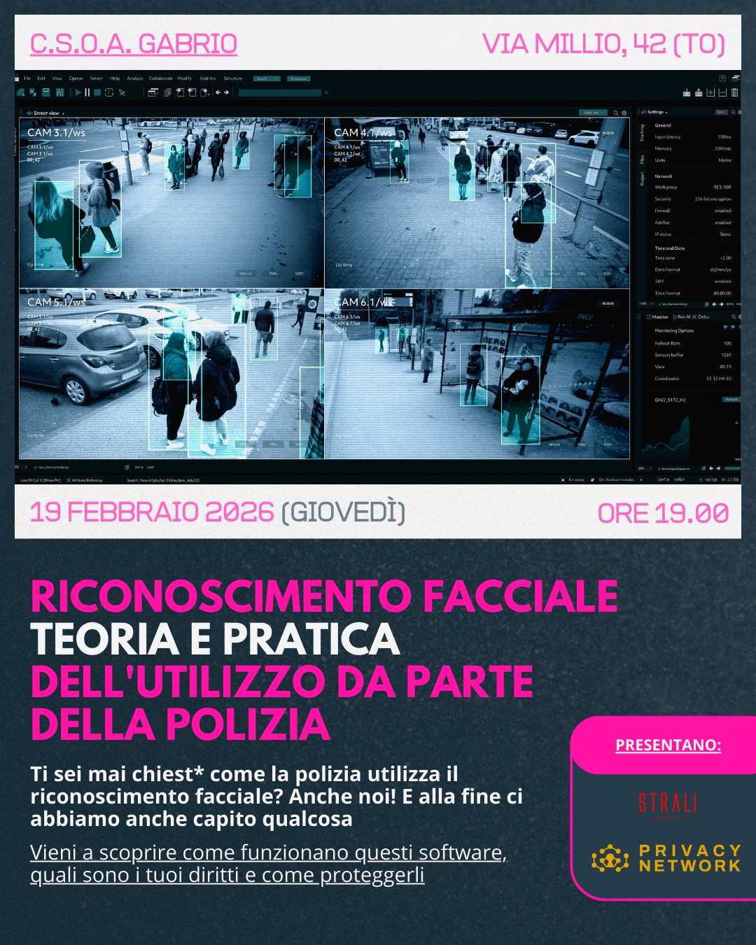 [2026-02-19] RICONOSCIMENTO FACCIALE: TEORIA E PRATICA DELL'UTILIZZO DA PARTE DELLA POLIZIA @ Csoa Gabrio